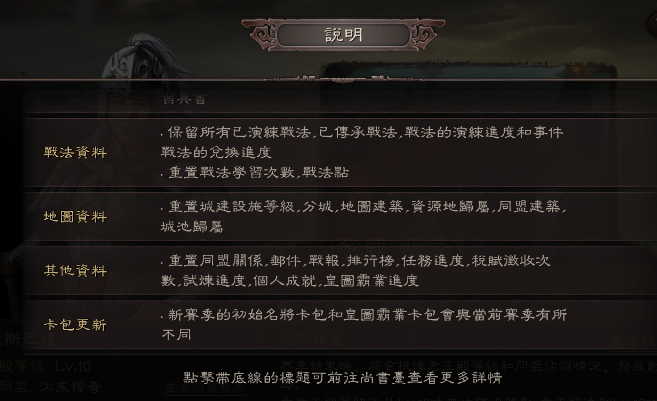 詳細說明可在 霸業-賽季說明-右上角問號 點擊查看