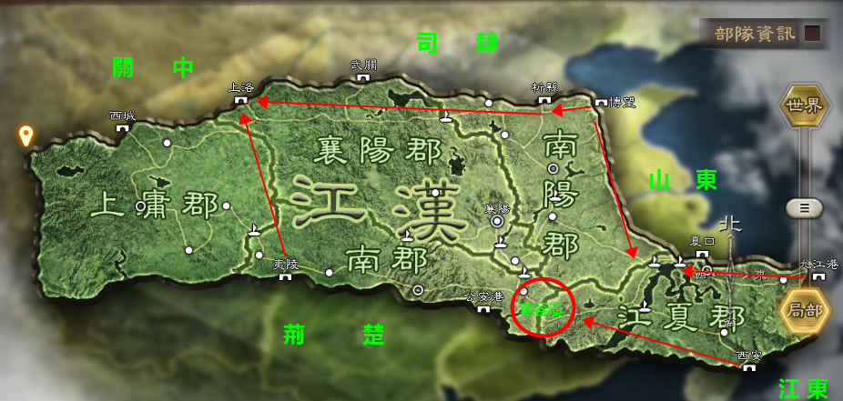 荊楚有著六州之中與資源州最廣闊的接壤,出關【公安港】,據江東於華容道,出關夷陵也可以最近的距離直取【上洛】,無論從哪裡出關,上庸郡都如囊中之物,稍微占據上風便可獨霸資源州三郡,但是出路越多似乎也意味著防守越難。