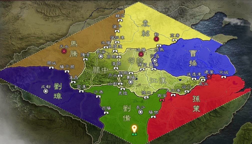 漢室衰微,豪傑並起,跨州連郡者不可勝數。曹操坐擁山東,袁紹稱霸河北,孫策自領江東,劉備掌握荊楚,劉璋佔據巴蜀,馬騰坐鎮西涼。天下群雄各據一方,共逐霸業。